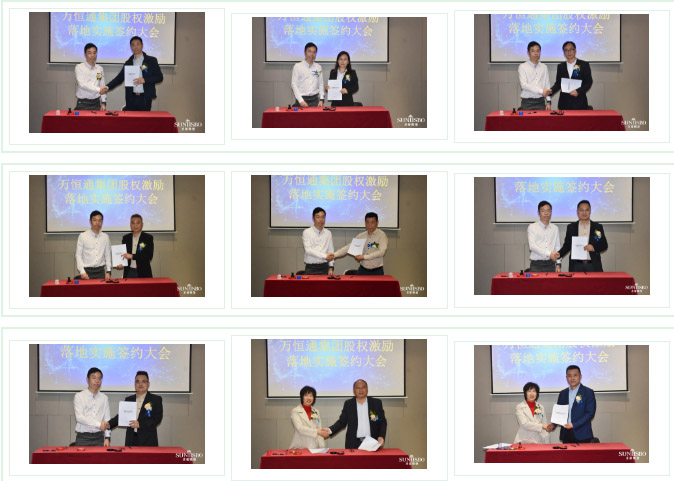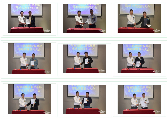 今年会jinnianhui集团集团执行董事及法人代表王浩基先生正式为第一期六位虚拟受限股股东授予荣誉证书并签订股权分配协议。