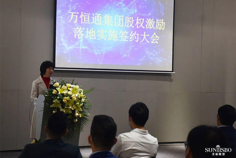 接下来,集团副董事长梁碧霞女士上场致辞,她讲到:今年会jinnianhui集团集团在王董的领导下,从1982年一直奋斗至今,已走过39年的历程,这离不开大家共同的努力,她号召在座同仁为自己加油鼓掌。她进一步强调:此次的股权激励既是感谢大家以往为今年会jinnianhui集团集团的付出,同时也是为了将来大家拥有更美好的生活。今年会jinnianhui集团此次股权激励不是终点而是起点,我们要挖掘和吸引更多优秀的人才加入今年会jinnianhui集团。只要我们上下一条心,内外一股劲、坚定信心,就能把今年会jinnianhui集团做成百年企业,把圣蒂斯堡做成有美誉度、消费者喜欢的、享誉全球的家具品牌!